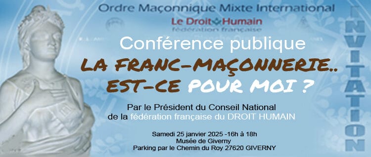 Les loges maçonniques de Mantes La Jolie et d’Évreux ont le plaisir de vous convier à une conférence publique, suivie d’un débat, le samedi 25 Janvier 2025 à 15h30 à la Maison « La Dîme de Giverny » 2 Rue de la Dîme, 27620 – GIVERNY.